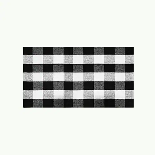 Start by framing your doorway with a lush green garland. Add a few red berry stems throughout to bring in texture and that festive pop of color. Place a small white chair or bench near the door and layer it with bright red cushions and maybe a cozy plaid throw. Underneath, a checkered or striped rug instantly ties everything together.